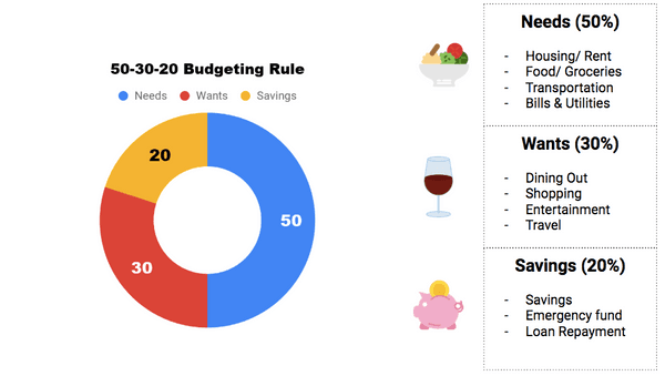 Anda dapat menghitung ini dengan menggunakan rumus 50-30-20 yang dipopulerkan oleh Senator Elizabeth Warren. Dimana Anda harus membagi pendapatan ke dalam 3 kategori: