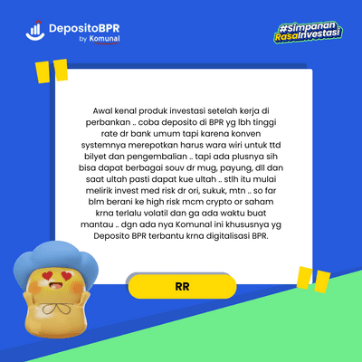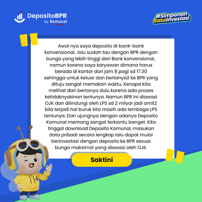Bagaimana? Makin percaya diri buat gabung DepositoBPR by Komunal, kan? Yuk daftar sekarang! Jangan lupa kasih kabar ke teman, keluarga, dan kesayangan kamu juga supaya lebih kenal sama DepositoBPR by Komunal.