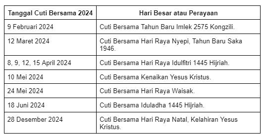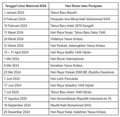 Daftar Hari Libur dan Cuti Bersama Tahun 2024