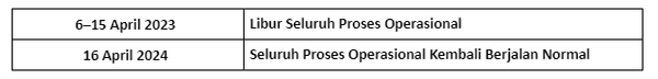 Terdapat perubahan pada beberapa metode transfer dana deposito pada tanggal 6–15 April 2024, sebagai berikut: