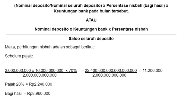 Berikut adalah contoh simulasi deposito syariah beserta cara perhitungan nisbahnya.