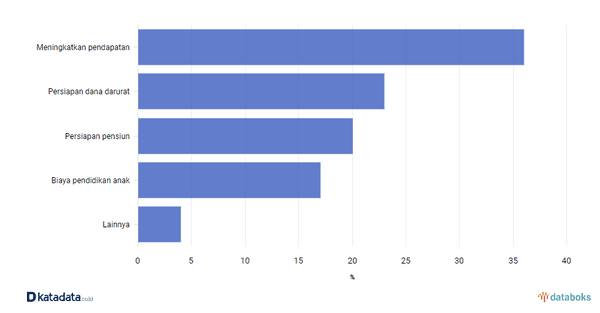 Hasil survei yang dilakukan Katadata Insight Center (KIC) bersama Zigi.id dan Sisi+ pada tahun 2021 ini mengumpulkan tanggapan 1.939 orang dari 33 provinsi di Indonesia mengatakan bahwa mayoritas tujuan investasi anak muda Indonesia bukan untuk mendapat profit jangka pendek melainkan untuk mempersiapkan masa depan.
