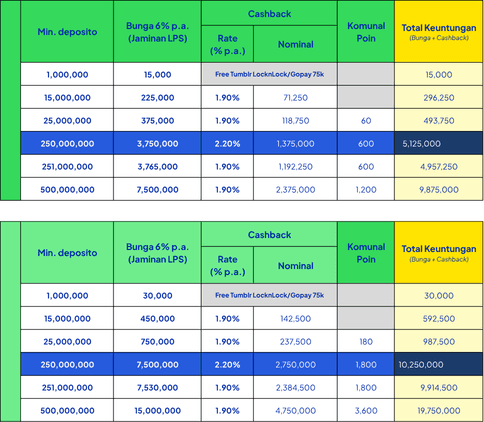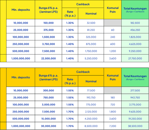 Cashback akan ditransfer ke rekening bank Deposan maksimal H+14 hari kerja setelah deposito jatuh tempo