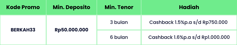 Manfaatkan momen tanggal kembar di bulan Ramadan ini untuk keputusan finansial yang lebih tenang dan penuh berkah. Deposito sekarang, nikmati cashbacknya, dan jangan sampai lewat sebelum 9 Maret 2026 berakhir.