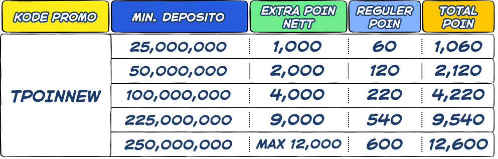 Deposito 25jt-249jt: 1000 Komunal Poin per kelipatan 25jt