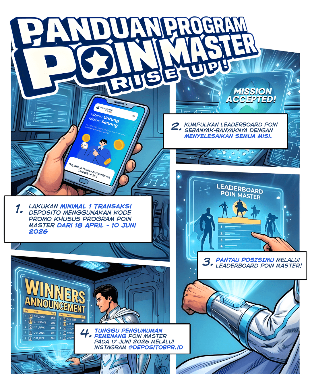 Poin Master: Rise Up! adalah program istimewa dari DepositoBPR by Komunal, di mana kamu bisa mengumpulkan Komunal Poin dengan menyelesaikan berbagai misi.