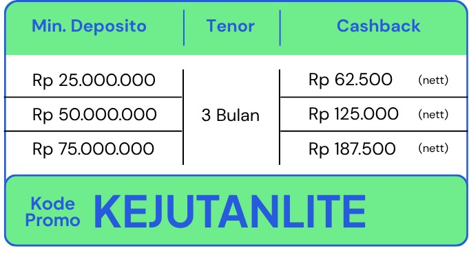 Min. deposito Rp25 juta, CB Rp62,5 rb (nett)