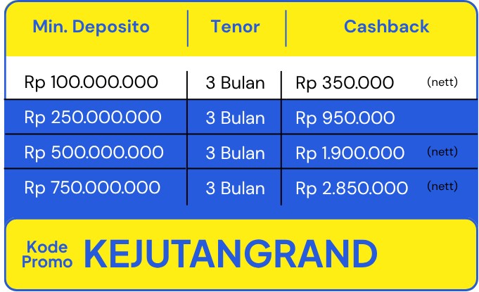 Min. deposito Rp75 juta, CB Rp187,5 rb (nett)